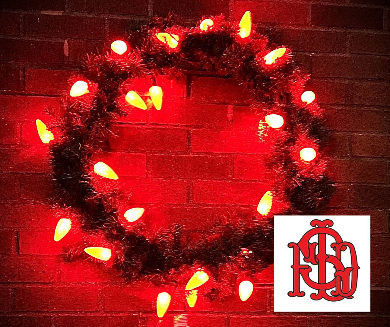 The Storm Lake Fire Department is launching its annual holiday safety reminder with a wreath now on display at the fire station. The wreath is lit with red bulbs, and