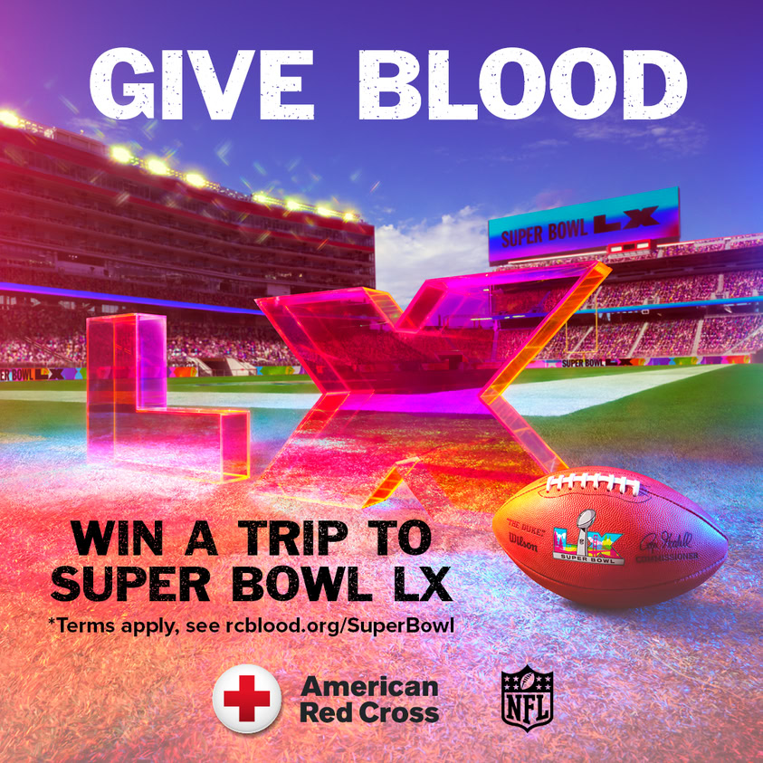 Galva will be hosting a Red Cross Blood Drive on Tues. Jan 20th from 1-6 pm at the Quad County Administrative Office, East entrance at 300 Crawford St. All donors will be entered for a chance to win a trip for two to Super Bowl LX in the San Francisco area, including pregame activities, round-trip airfare, three night hotel stay and a $1,000 gift card. For more information or to schedule an appointment, visit redcrossblood.org and type 51020 in the search box or call LuAnn Bennett at 712-282-4608.