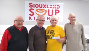 The council recently directed $1,000 to the Siouxland Soup Kitchen in Sioux City. The gift comes from the Knights’ “Cans for a Cause” recycling project, which turns redeemable bottles and cans into charitable funds.